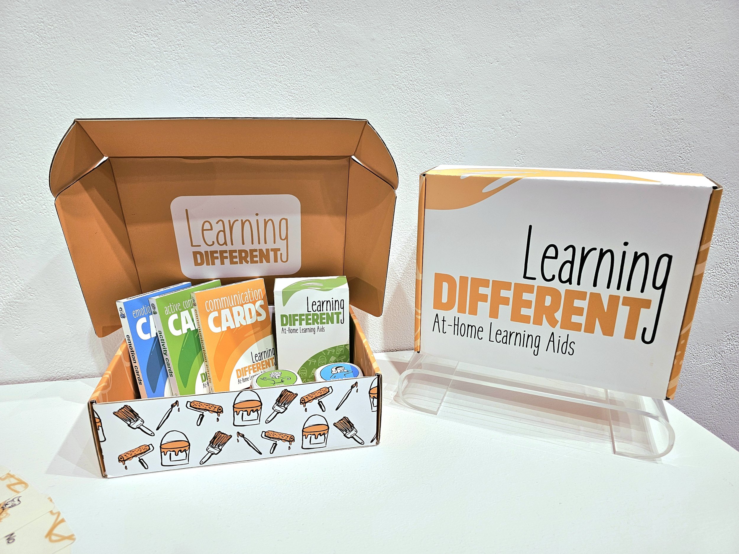 Learning Different was created for my senior BFA exhibition during my final year at Murray State University. It is a variety of branding and product design projects for at-home learning aids that explore the concepts of inclusive design principles and raising awareness of consistent education opportunities for children part of the neurodivergent community. These concepts are explored in multiple mediums I have found myself drawn to including graphic design, screenprinting, bookbinding, and more.